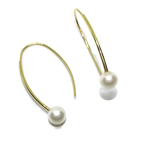 Piccoli orecchini a gancio in oro giallo 18 carati con perle coltivate da 6 mm, comodi e leggeri da donna, lunghi 3,20 cm e larghi 1 mm., Oro 18 carati