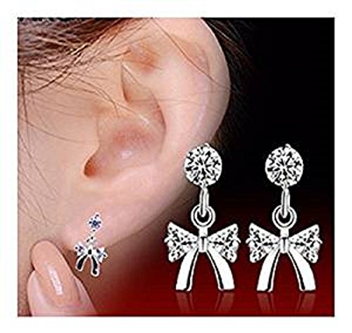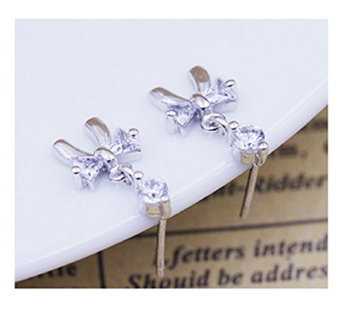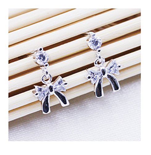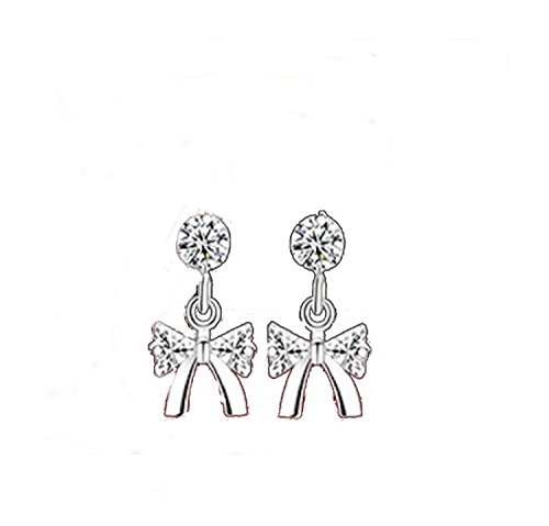 Piccoli orecchini a perno a forma di fiocco con zirconia cubica, in argento Sterling 925 di alta qualità