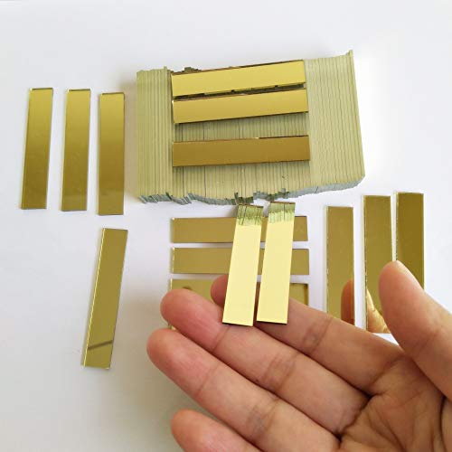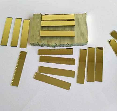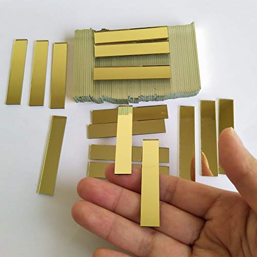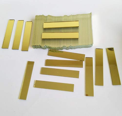 Piccoli specchi rettangolari in vetro, piastrelle a mosaico rettangolari, mosaico a specchio in vetro, 100 pezzi (oro giallo, 9,5 x 50,8 mm)