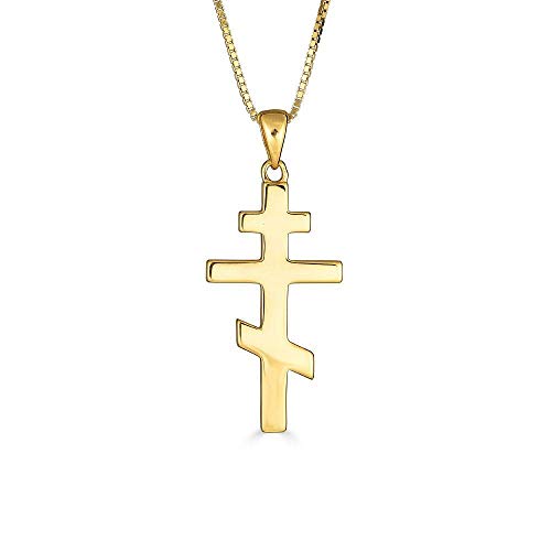 Piccoli Tesori Collana Pendente Argento Sterling 925 Placcato Oro Giallo Russian Orthodox Cross (Lunghezza della Catena Disponibile 40 cm - 45 cm - 50 cm - 55 cm)