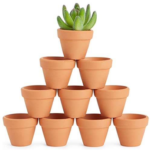 Set di 10 piccoli vasi di terracotta, per fiori di piccole dimensioni, piantine da interni e da esterni e per piante grasse, marrone, 2,5 x 3,8 cm.