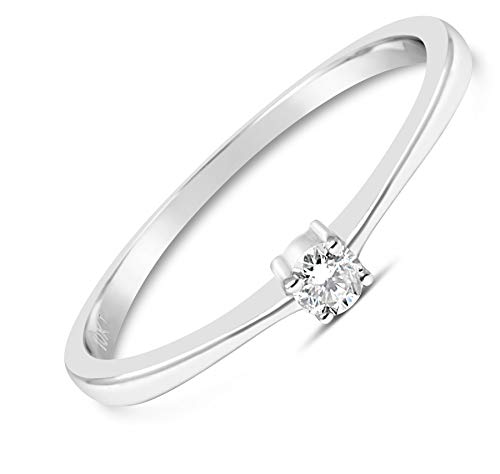 Piccolo anello solitario da donna in oro bianco con diamante naturale da 0,05 ct, con montatura classica a 4 griffe, per un'eleganza semplice e un fascino senza tempo, Oro bianco Oro bianco Oro Diamante, Diamante