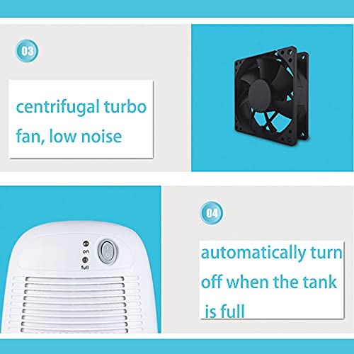 Piccolo deumidificatore da 500 ml, mini deumidificatori compatti ultra silenziosi per cantina, casa, camera da letto, bagno, camper, armadio, spegnimento automatico