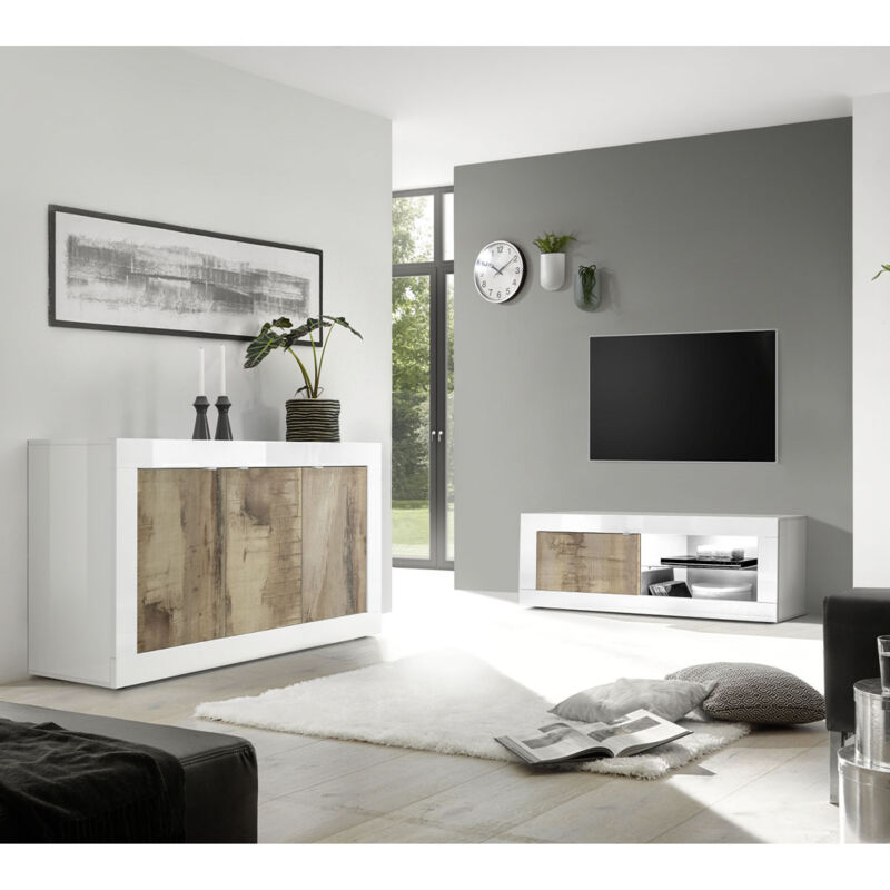 Caratteristiche del prodotto: 1 porta. 1 ripiano in vetro. Maniglia in metallo. Prodotto interamente italiano. Realizzato con pannelli di particelle di alta qualità. Legno proveniente da foreste gestite in modo sostenibile Etichetta FSC. Disponibile in cinque colori: Bianco lucido / Rovere chiaro / Bianco lucido e rovere pero / Marmo nero / Nero opaco e rovere pero. Dimensioni del prodotto: Lunghezza 140 cm x Larghezza 43 cm x Altezza 56 cm - Peso netto: 30 kg. Dimensioni del pacchetto: Pacchetto n°1: Lunghezza 150,3 cm x Altezza 47,3 cm x Profondità 10,8 cm - Peso lordo: 32,8 kg.