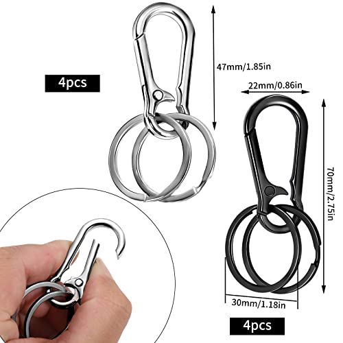 【Set moschettone】 Riceverai 4 moschettone piccolo argento e 4 di nero, ogni moschettone viene fornito con 2 portachiavi per la tua comodità, ideali per escursionisti, campeggiatori, fotografi all'aperto, backpacker, ecc.