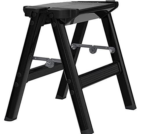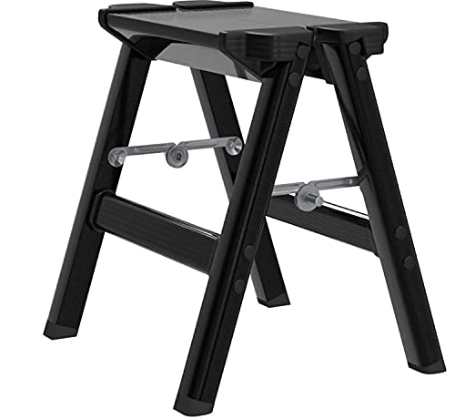 Piccolo sgabello pieghevole per adulti o bambini, scala in alluminio, ideale per cucina, bagno, camper, armadio, garage, giardino (nero)