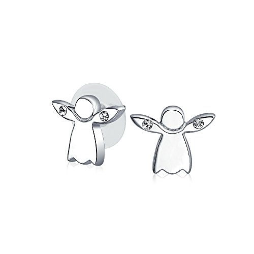 Piccolo Spirituale Delicato Religioso Cristallo Accento Angelo Custode Orecchini Per Le Donne Per L'Adolescenza Placcato Argento