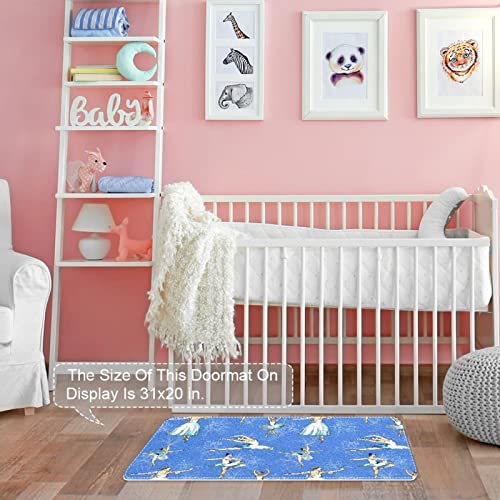 Piccolo tappeto assorbente per ingresso, tappetino da interno antiscivolo da 95 cm x 54 cm, moderno, resistente alla sporcizia, decorazione per la casa, blu ballerina ragazza