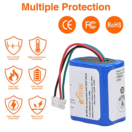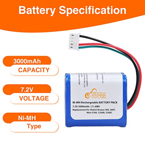 Pickle Power 7.2V 3000mAh Ni-MH Batteria per iRobot Braava 380, 380T, 390T, Mint 5200, 5200B, 5200C Aspirapolvere