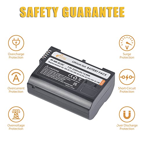 Alta capacità: 2 batterie EN-EL15C EN-EL15B EN-EL15 da 2280 mAh ad alta capacità. Utilizza celle di alta qualità per una maggiore durata della batteria senza effetto memoria.