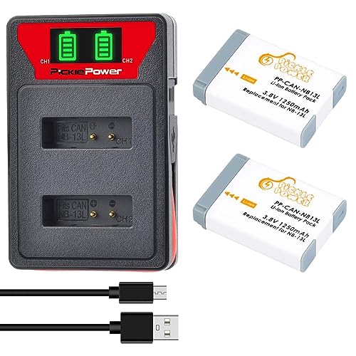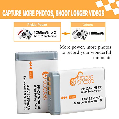 Pickle Power 2 batterie NB-13L e caricabatterie Dual USB per fotocamera Canon PowerShot G1 X Mark III, SX620 HS, SX720 HS, SX730 HS, SX740 HS, G7 X, G7 X Mark II, G5 X, G5 X Mark II, G9