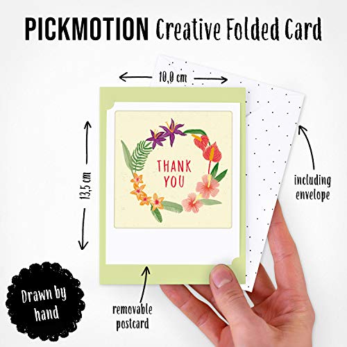 PICKMOTION Thank you | Set di 2 Biglietti Pieghevoli Piccoli | Biglietti d'auguri - Inclusa busta, Illustrazioni fatte a mano, disegnati a Berlino, Biglietti di ringraziamento