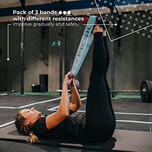 PICSIL Fasce di Resistenza in Tessuto, Confezione da 3 Nastri Elastici per Bodybuilding, Fitness, Yoga, Pilates, Sistema Antiscivolo per Gambe e Glutei, 3 Livelli di Durezza (Blu)