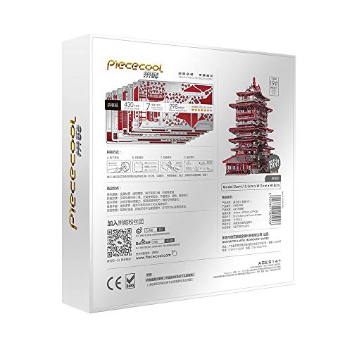 Piececool YUEWANG Tower HP089RKS Highly Detailed Metal Model Kit,No Glue, 298 Pieces