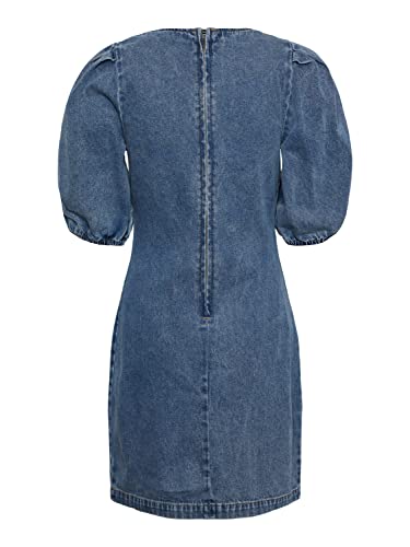 PIECES Pcbru SS Square Neck Dress BC Vestito, Media Blu Denim, S Donna