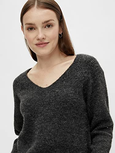 PIECES PCELLEN LS V-Neck Knit Noos BC Pullover, Dark Grey Melange, XS Donna