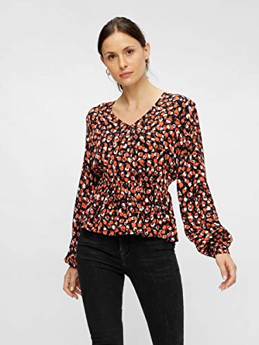 PIECES PCRAYA LS Top Canottiera, Nero/AOP: Animale, XS Donna