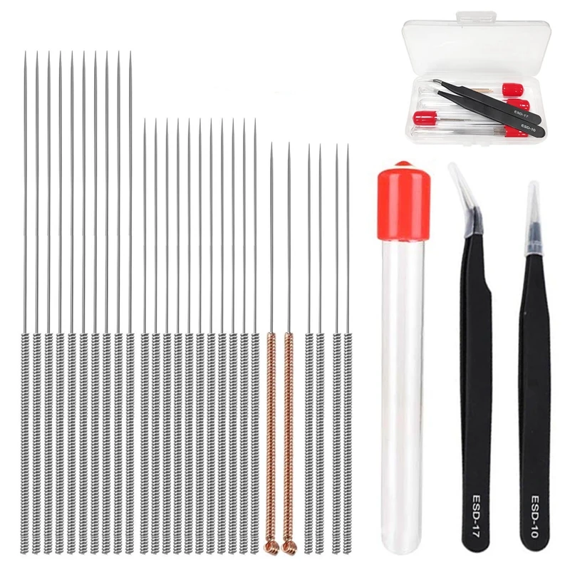 28 Pieces 3D Printer Nozzle Cleaning Tool Kit, Nozzle Cleaners Including 26 Pieces Cleaning Needles 2Pcs Tweezers