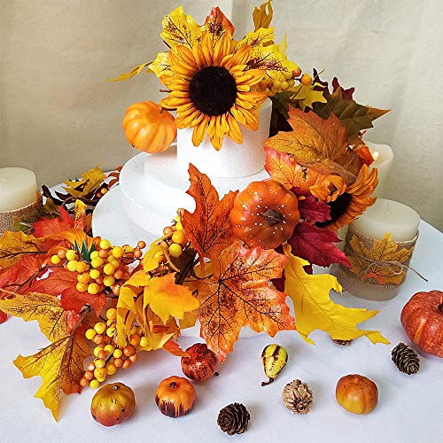ASPETTO DIFETTOSO: Foglie di acero realistiche, girasole adorabile, zucca carina. Questa collezione può non solo abbinarsi bene con la stagione autunnale o il giorno del ringraziamento, ma sottolinea anche l'estetica familiare.