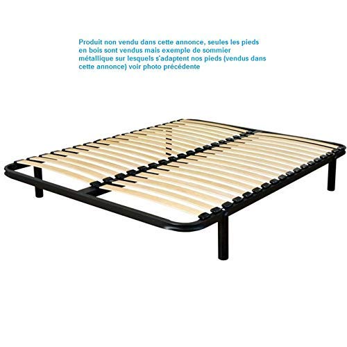Set di 4 piedi da 35 cm, colore: legno naturale, diversi tipi di fissaggio, Fissaggio metallo, Fixation cadre métal, Fixation pour cadre sommier métallique