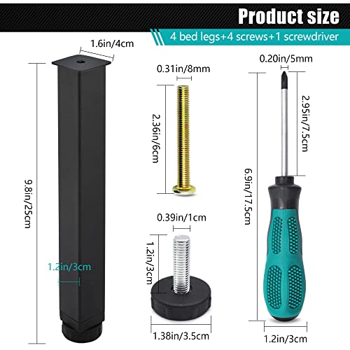 【Contenuto della confezione】: Riceverai 4 piedini letto neri da 25 cm, 4 viti da 6 cm, 1 cacciavite. Le gambe mobili possono essere usate per mobili, divani, letti, armadi, ecc.