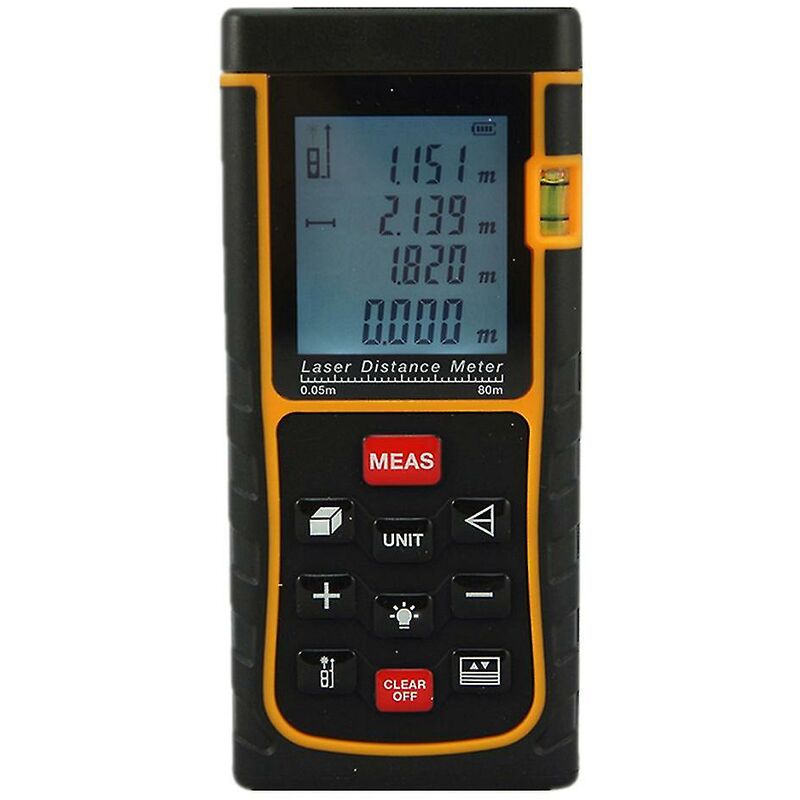 Misurazione istantanea di distanza, area e volume con un solo pulsante: SÌ Ampio campo di misura: SÌ Alta precisione: 2 mm (0,079 pollici) Calcolo automatico di Area e Volume: SÌ Misura indiretta con teorema di Pitagora: SÌ Misura singola/continua: SÌ Tracciamento della distanza massima/minima (valore visualizzato): SÌ Aggiunta/sottrazione facile della misurazione: SÌ Impostazione del benchmark anteriore/posteriore: SÌ metri selezionabili (m), pollici (pollici) e piedi (piedi): SÌ Funzione di memorizzazione/richiamo dei dati: SÌ Funzione Data Hold / Cancellazione dati: SÌ Livella bolla d'aria: SÌ, inclusa Facile puntamento con puntatore laser luminoso: SÌ Ampio display LCD con retroilluminazione e display multi-riga (4 righe): SÌ Tecnologia di correzione automatica e segnalazione errori: SÌ Indicazione cicalino: SÌ Indicazione dello stato della batteria: SÌ Protezione IP54 (a prova di polvere e schizzi): SÌ Funzione di spegnimento automatico / manuale: SÌ Multifunzione con calcolo