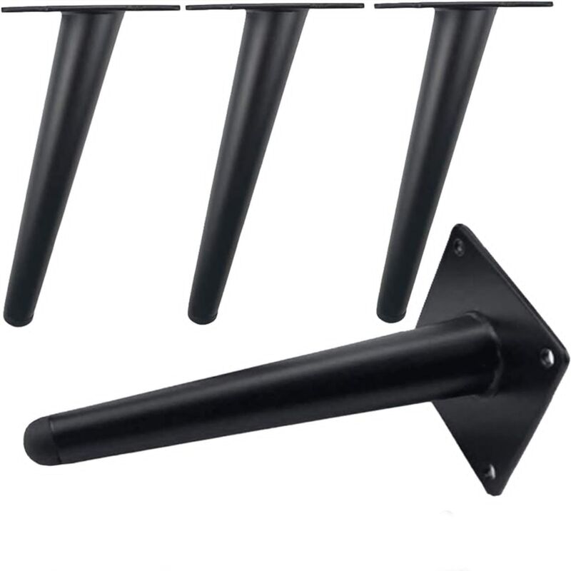 diametro tubo superiore 32 mm, diametro tubo inferiore 19,6 mm. Materiale: ferro, nero, antiruggine e anticorrosione. Facile da installare: piastra di premontaggio -forata, fissaggio con viti in acciaio inox. Applicazione: banconi, tavolini, scrivanie, mobili fai da te, divani, ecc. Contenuto della confezione: 4 gambe del tavolo inclinate