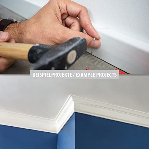 La testa svasata profonda consente di martellare facilmente e a filo e l'acciaio zincato impedisce la formazione di ruggine antiestetica. In questo modo il battiscopa può essere fissato in modo visivamente accattivante.