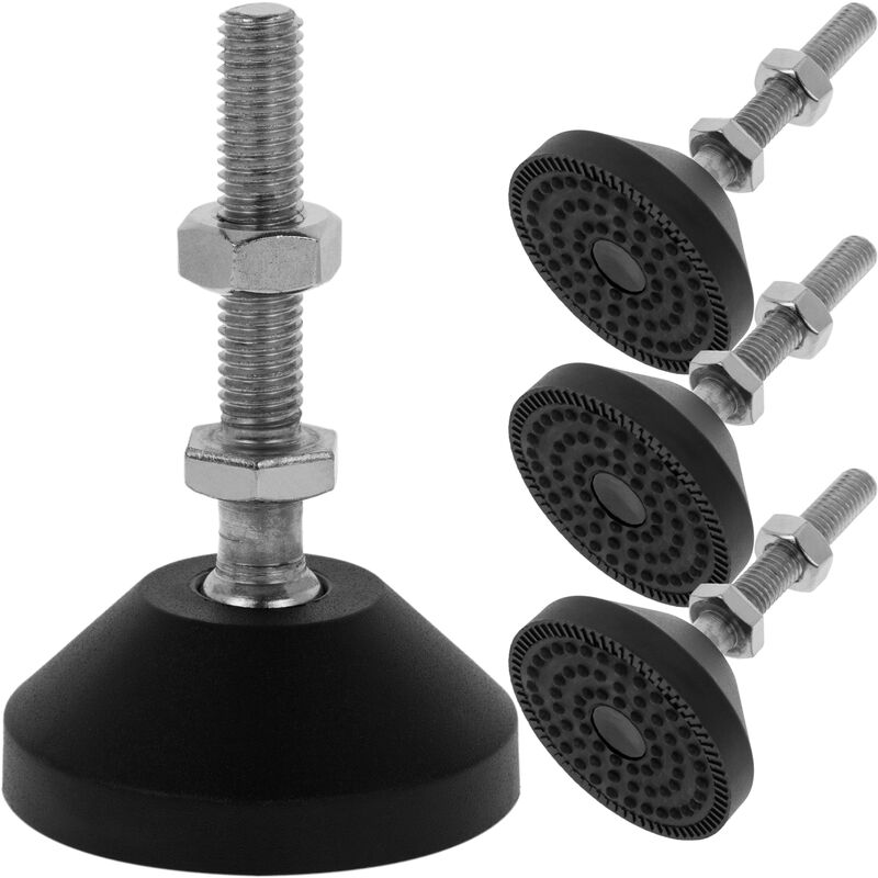 Piedini di livellamento in acciaio. Base girevole che permette al piede di adattarsi a superfici irregolari. Piedi metrici M10 Specifiche Piedini di livellamento metrici M10. Confezione da 4 unità. Stelo filettato lungo 50 mm. Diametro del piede 60 mm. Base girevole che permette al piede di adattarsi a superfici irregolari.