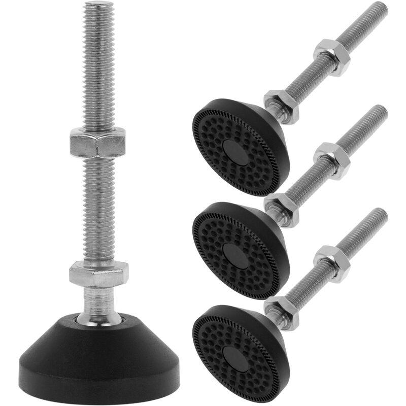 Piedini di livellamento in acciaio. Base girevole che permette al piede di adattarsi a superfici irregolari. Piedi metrici M10 Specifiche Piedini di livellamento metrici M10. Confezione da 4 unità. Stelo filettato lungo 80 mm. Diametro del piede 50 mm. Base girevole che permette al piede di adattarsi a superfici irregolari.
