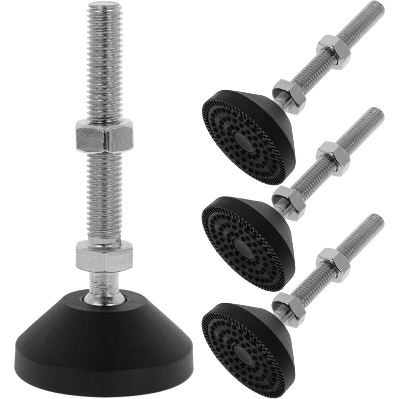 Piedini di livellamento in acciaio. Base girevole che permette al piede di adattarsi a superfici irregolari. Piedi metrici M12 Specifiche Piedini di livellamento metrici M12. Confezione da 4 unità. Stelo filettato lungo 80 mm. Diametro del piede 60 mm. Base girevole che permette al piede di adattarsi a superfici irregolari.