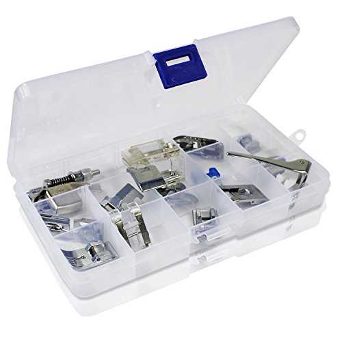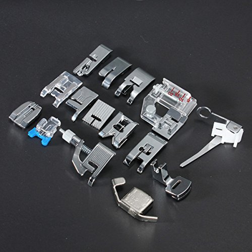 Si tratta di un set di 15 piedi piedino di diversi piedini molto popolari per stile cantante industriali macchine singole ago per cucire, anche montare altre macchine domestiche con sistema di attacco basso.