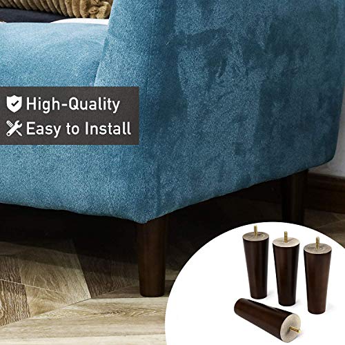 4 Piedini per Mobili in Legno Gambe per Mobili in Rovere Conico Cabinet Cono Dritto Piedi del Divano Tavolo Letto Armadio Cabinet Armadietto Guardaroba,Vite M10,Noce(15cm)