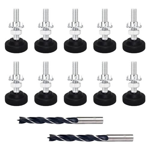 10 pcs Piedini Regolabili con 2pcs Punta da Trapano Piede di Regolazione Regolabili Piede Vite M8 x 50mm Viti di Regolazione Metallo con Dado a Griffe Piedini di livellamento per Armadio Tavolo Divano