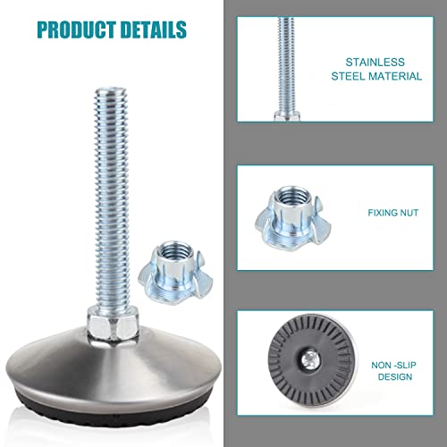 Piedini regolabili per mobili in metallo con Dado a Punta T in metallo zincato M10x 50mm dadi di fissaggio 8 piedini di livellamento + 8 dadi drive