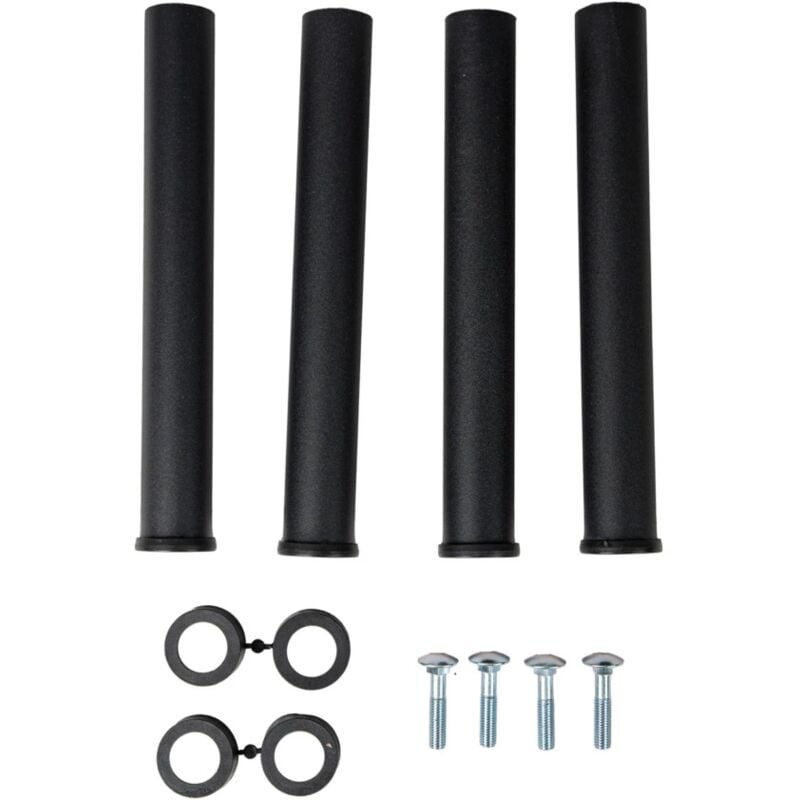 Set composto da 4 piedini per rete con doghe in legno. Altezza di ogni piedino: 30 cm. Diametro: 4 cm. Completi di tappo in plastica filettato montato con dado M10 nella parte superiore. Fissaggio della gamba alla rete con una vite M10x50 con quadro sotto testa, con piastra a scodellino. Confezione completa di 4 puntali in plastica da montare nella parte inferiore. Di colore nero. Caratteristiche del prodotto Materiale Metallo Dettagli Diam. 4 cm;
