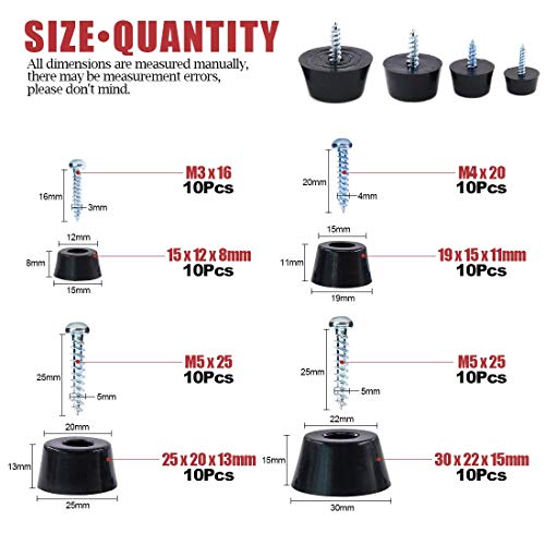Preoccuparsi delle viti che acquisti da altri negozi non si adattano ai cuscinetti? Se si sceglie il nostro prodotto, non più preoccupazioni di dimensione per voi. Abbiamo 15 x 8 mm (19/32 "× 5/16"), 19 x 11 mm (3/4 "× 7/16"), 25 x 13 mm (63/64 "× 33/64") e 30 x 15 mm (1-13/64" × 19/32"). Per ulteriori informazioni, fare riferimento all'immagine 2 sulla colonna immagine sinistra. Confezione da 40 piedini in gomma e ogni misura viene fornita con le viti corrispondenti. Inoltre, l'inserto in metallo è per una maggiore resistenza. Una volta applicato, non rimangono segni neri.