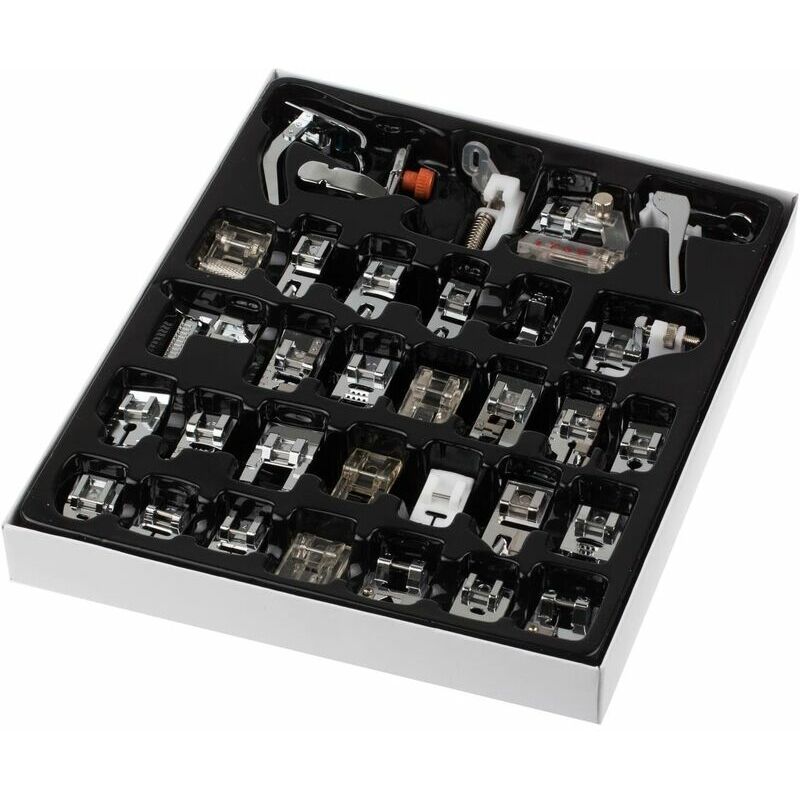 MATERIALE: il prodotto è realizzato in PVC e lega di zinco. . Piede di porco incluso: 1 * Piedino per frange: un ottimo strumento per creare decorazioni 3D, effetti stereoscopici di fiori e nappe. 1 * Piedino per cordoncino 1 * Piedino per treccia 1 * Piedino per cordoncino perla gestire le tagliacuci difettose e creare l'orlo arrotolato perfetto. . 1* Piedino per tflon a scatto 1* Piedino per ricamo a punta aperta 1* Piedino a punta aperta 1* Piedino per cordoncino 1* Piedino per trapuntatura in metallo a scatto 1/4 1* Piedino per punto diritto Set guida di 1 * 1 /4 piedino di recupero 1 * piedino per punto bordo 1 * piedino per punto pieno - un ottimo strumento per punti densi e punti applique. 1 * Piedino per cordoncino a 7 fori 1 * Piedino per punto di giunzione di bordi patchwork 1 * Piedino per punto guida 1 * Piedino per orlo invisibile. Piedino 1 * 6 mm Piedino per orlo arrotolato 1 * 3 mm Piedino per orlo arrotolato rotondo 1 * Piedino a rullo 1 * Piedino per rammendo per