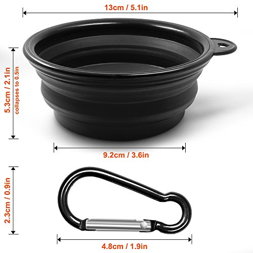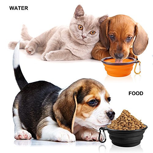 Pieghevole 2-Pack ciotola del cane,del gatto MAXIN silicone Ciotola portatile Pet Food Water Bowl,pieghevole espandibile Coppa del piatto per gli animali domestici,approvato dalla FDA.Black e Orange