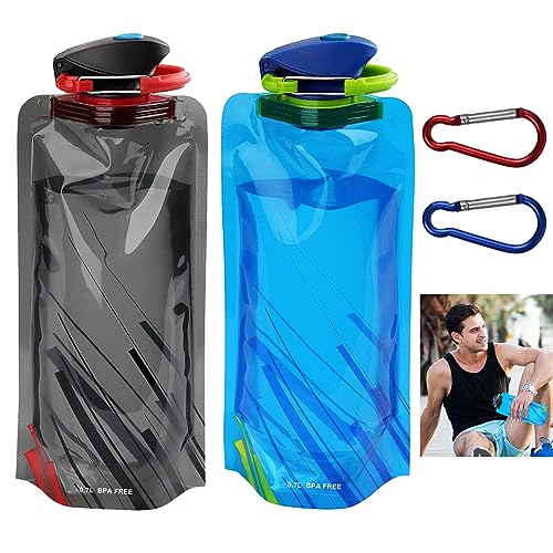 Pieghevole Bottiglia Flessibile Riutilizzabile,Bottiglie di Acqua Pieghevole Set,Pieghevole Bottiglia Flessibile,Bottiglia Flessibile Riutilizzabile l'Acqua,Unisex Borraccia Ripiegabile 700ML,2Pcs