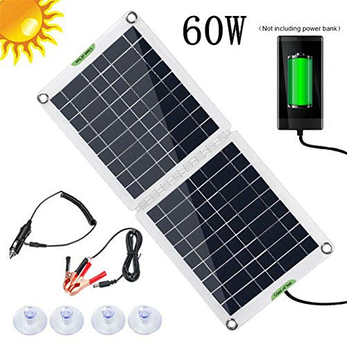 Kit Pieghevole Pannello Solare,MoreChioce 60W 6/12 / 18V Pannello Solare Doppia Porta USB Impermeabile Policristallino Solar Panels Batteria Regolatore di Carica