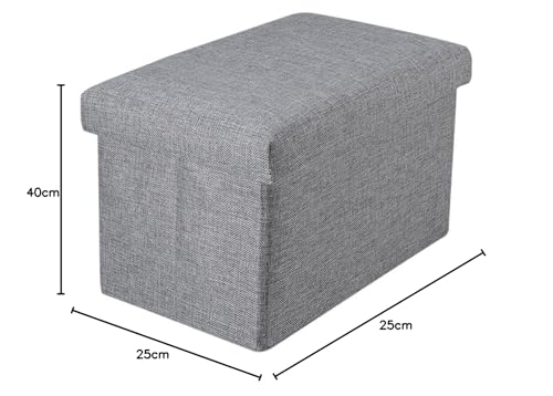 Pieghevole Stoccaggio Ottomano Poggiapiedi Sgabello Contenitore Cassapanca Pieghevole, Grigio - Tessuto Come Lino, 40 x 25 x 25 cm