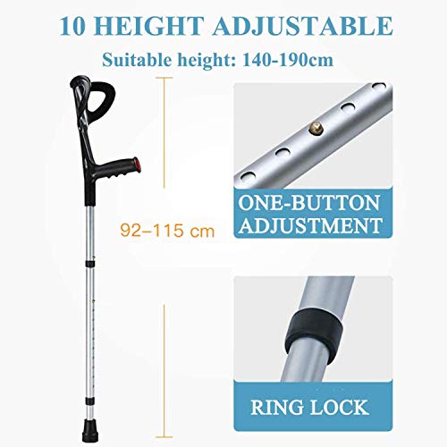 Pieghevoli Movimento Avambraccio Stampelle età, Altezza Regolabile Medica Bracciale Stampella, in Lega di Alluminio Leggero, Non Skid Sostituibile in Gomma Tips,1pcs