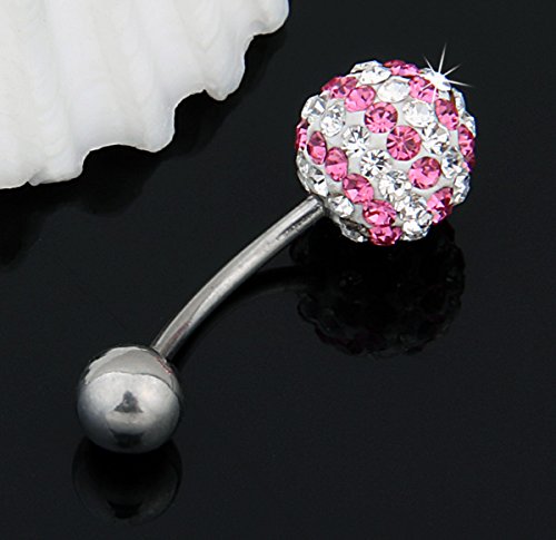 Piercing ombelico rotondo in acciaio con strass bianco rosa
