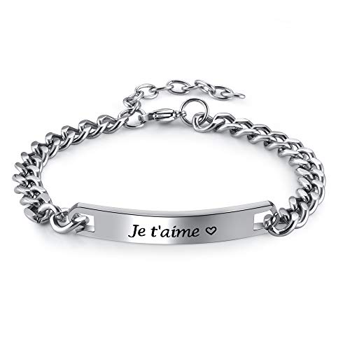PiercingJak - 2 braccialetti coppia innamorati, con incisione “Je t'aime”, in acciaio inossidabile, per uomo, San Valentino, donna, Taglia unica, Acciaio inossidabile, no.,