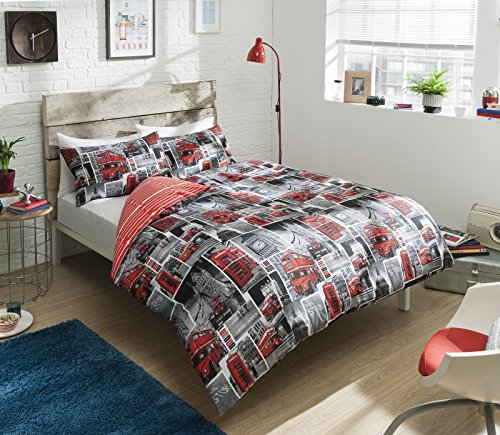 Pieridae, Set copripiumino con federe, Motivo autobus rosso londinese, Reversibile, 50% cotone/50% poliestere/ in cotone/misto-cotone/poliestere, Red, King size