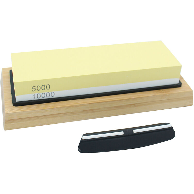 L'ensemble de pierres à aiguiser comprend une meule double face, un support en silicone, une base en bambou et un guide d'angle. Il convient à l'affûtage des couteaux de la cuisine à domicile ou du travail du bois. Spécifications: Matériau: Corindon blanc< br /> Poids du colis: 1100 g / 38,8 onces Taille du colis: 240 * 105 * 65 mm / 9,45 * 4,13 * 2,56 pouces < br /> Liste de colisage: 1 * Pierre à aiguiser 5000/10000 1 * Support en silicone 1 * Bambou Base 1 * Guide des anges