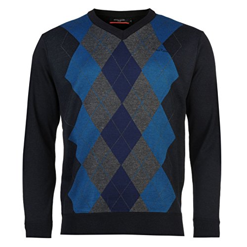 Pierre Cardin Uomo Argyle Maglia Maglione Pullover Manica Lunga Scollo a V