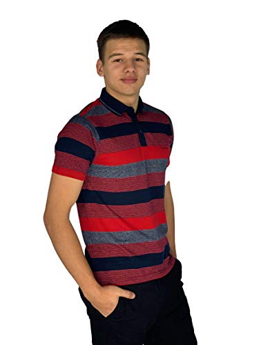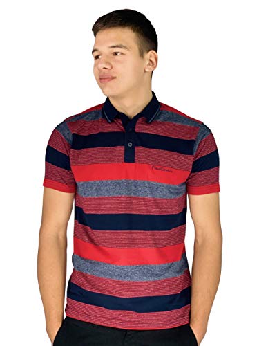 Pierre Cardin Uomo Polo Ingegnerizzato a Righe con Ricamo Firmato (Medium, Red/Grey Marl/Navy)