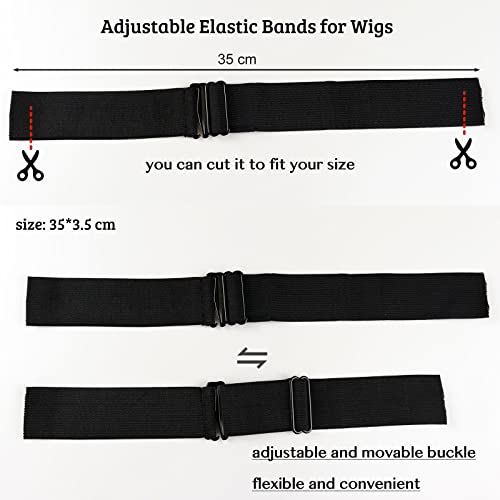 Bande elastiche regolabili per parrucche: 5 pezzi in 1 confezione, lunghezza-35 cm larghezza-3,5 cm. Questo lo rende abbastanza flessibile da poter essere utilizzato per le chiusure in pizzo e per le persone con teste più grandi.